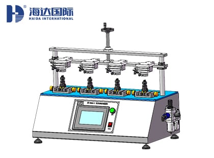 5.每工位配置4個(gè)電源插孔,可做樣品的通電設(shè)置,通過觸控屏預(yù)設(shè)參數(shù)來測定開關(guān)通電情況下的疲勞次數(shù);